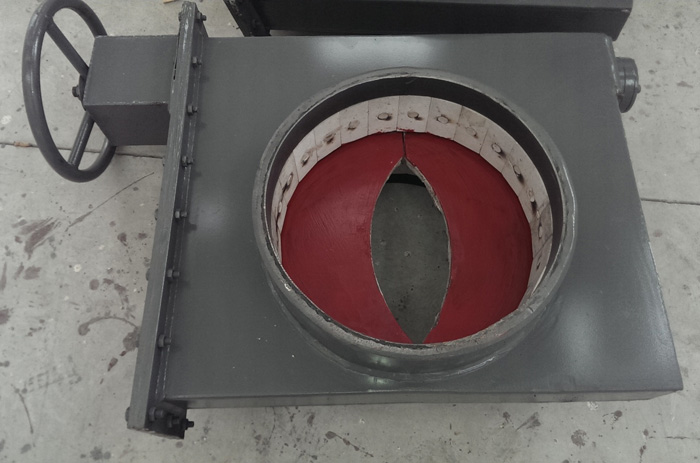 4、左、右兩塊芯板采用稀土耐磨材料鑄造,耐磨性?xún)?yōu)越,密封性 能良好,啟閉靈活,調(diào)節(jié)性能好,工藝精細(xì)、外形美觀。